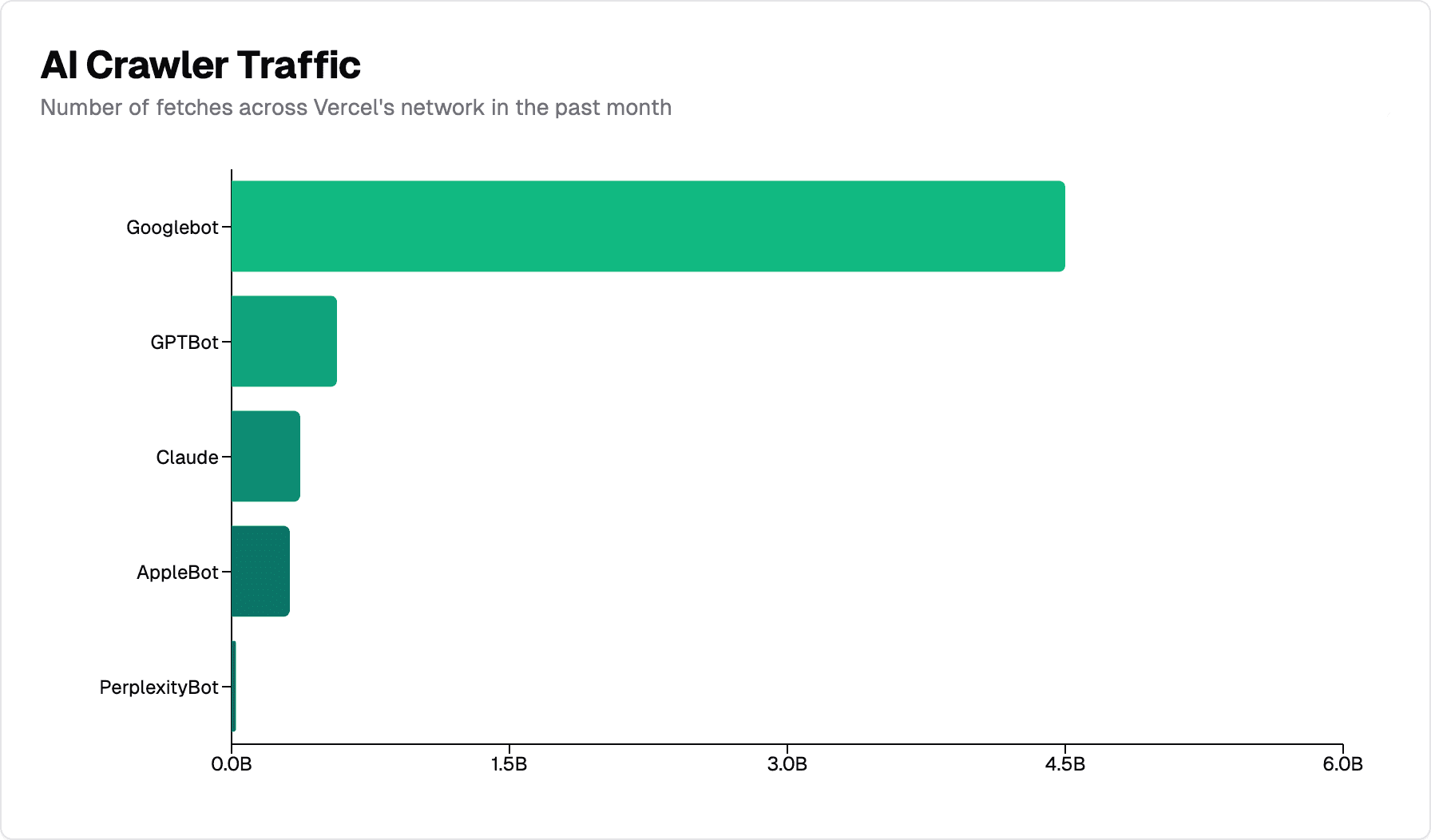 我们的分析表明,AI 爬虫已迅速成为网络上的重要存在,Vercel 的网络每月有近 10 亿个请求。